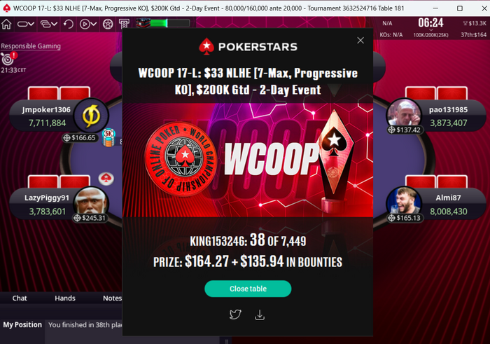 Поэтому больше всего тильтанул из-за того что в середине серийников и за 2 дня до конца(и не напрямую, а через вип-менеджера для випов), когда начал цепляться за лидерборд(и частично строил свою стратегию исходя из лб, зная что побороться не получится - некоторые споты бы по другому играл), прошел во все фазы, выиграл билет на фрирол к чемпионату по 8 играм за 2100. Ушли б в обычной ситуации - ну прост бы поржал, что старзы отправили меня в отпуск и пошел на море чилить да гулять(благо, это адское жаркое лето закончилось).