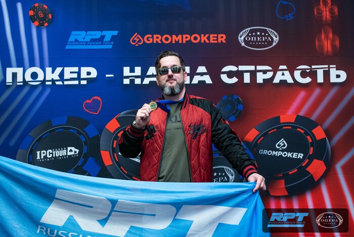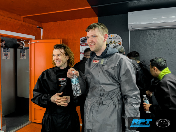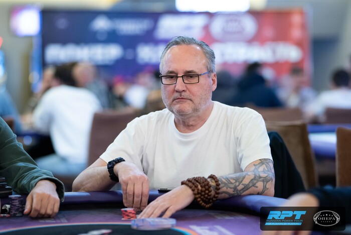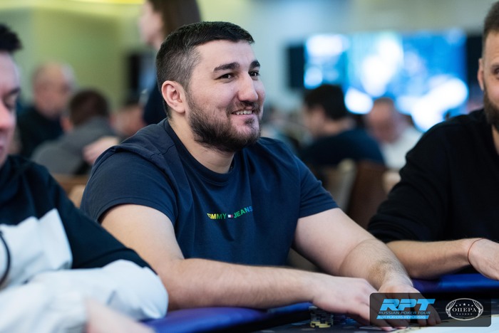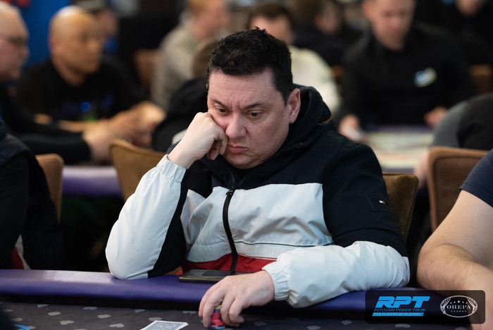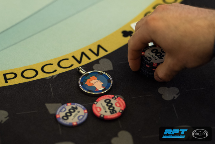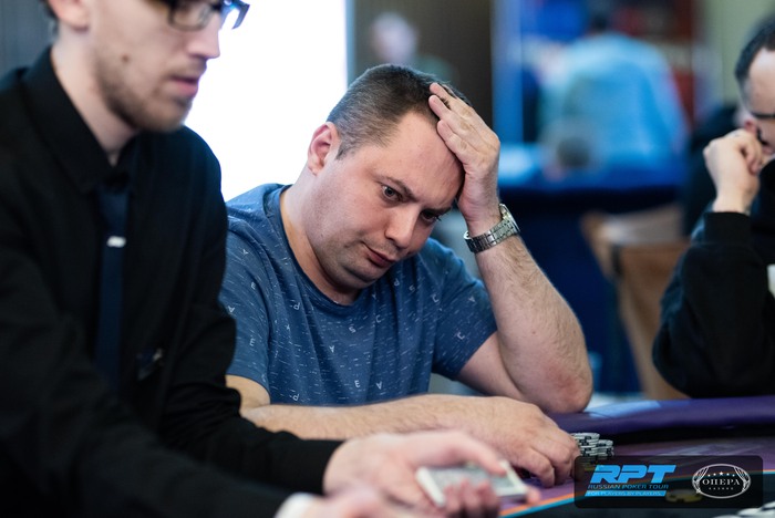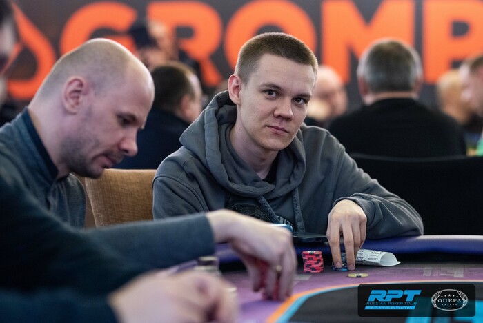 Здесь же сидит довольный Евгений Харлов, который объявил, что ему удалось крутануться с 20к до среднего стека.