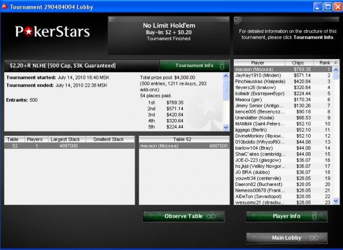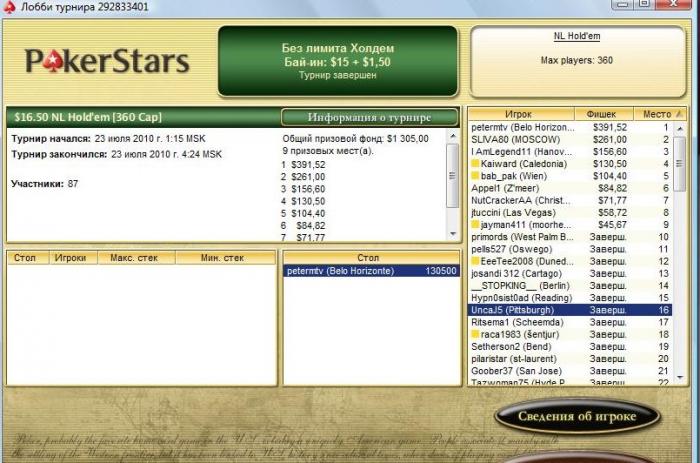 Tournament started 2010/07/13 11:00:00 MSK [2010/07/13 3:00:00 ET]