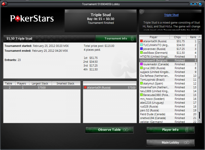Poker Stars $4.10+$0.40 No Limit Hold'em Tournament - t15/t30 Blinds - 9 players -