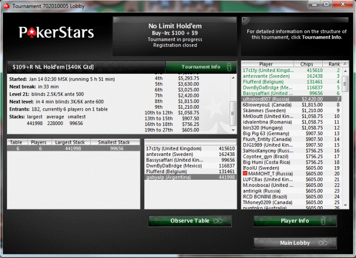 хотел сегодня поехать в Москву разогнать тоску и печаль но одно животное все мне обломало остался дома решил сыграть пару тройку мттх открыл 5 обычных и ткуп шутаут через 10 минут живой был только в турбинке решил пихать все подряд теперь сижу жду следующий стол покер странная хня