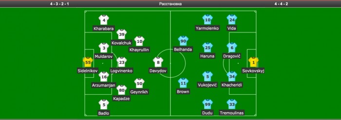 Полузащитники: Огнен ВУКОЕВИЧ, МИГЕЛ, Лукман АРУНА, Олег ГУСЕВ, Роман БЕЗУС, ДУДУ, Юнес БЕЛАНДА, Андрей ЦУРИКОВ, Сергей СИДОРЧУК;