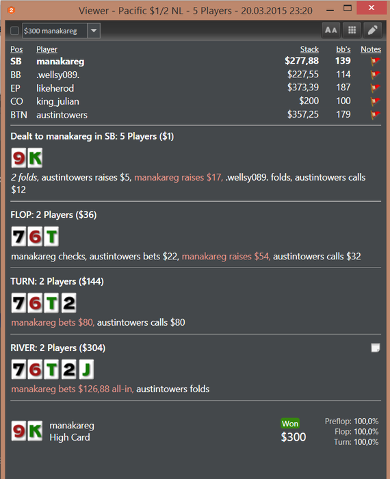 Условия конкурса: нужно угадать кто к кому покатились фишки и с какой рукой я был.На скрине видна одна карта, так проще, масть не имеет значения.
