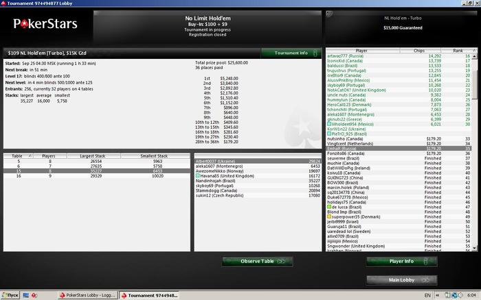 Почти в точку, и туры играю все от себя, в 100+ недавно стал прыгать, времени больше появилось, и туда где составы норм и не кило-поляны, на фтп в этом плане шикарно, з.ы. когда я решил в первый раз сделать депозит в он-лайне мне очень нравилось фтп...я на работе смотрел канал pro-poker, там в основном фтп-про мелькали.. ну зашел на сайт-все круто..перевожу 170$-ухожу на работу, прихожу домой..думаю щас поиграю..открываю лобби-а оно не работает, я другу звоню-а он говорит, что фтп заблокировали.