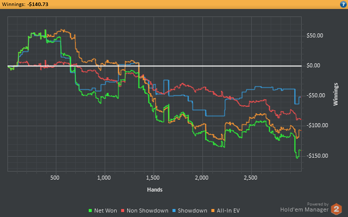 Такой расклад вещей меня совершенно не удивляет, так как в зуме это обычное дело На тот момент отыграно около 750 рук, продолжаю сессию, не тильтую. И тут начинается полный "П". Скороее даже не начинается, а продолжается Последующие ~ 2200 рук тебя без вариантов сдают вниз. Нет это не твои ошибки, это просто такое стечение обстоятельств.