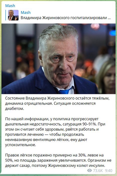 Julio @ 09.02.22По информации РБК Жириновский находится в критическом состоянии на ИВЛ.