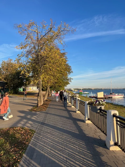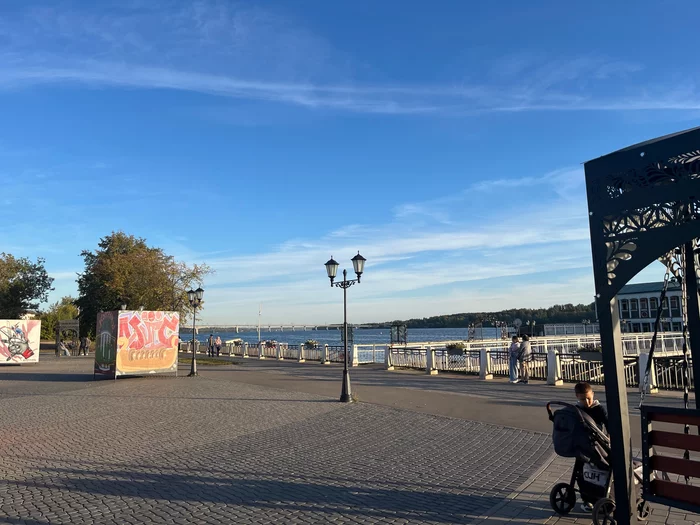 Тем более, что в Нижнем набережная находится дальше от реки, чем в Костроме, а в Костроме вот она - хоть иди и купайся (хотя я думаю, что купаться там нельзя). К тому же в Нижнем очень большой автомобильный трафик, а в Костроме его нет.