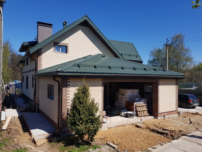 Вот посвежее ещё фотки. Ну из внешних изменений правда пожалуй только цоколь клинкером обложили и то пока не по всему периметру.