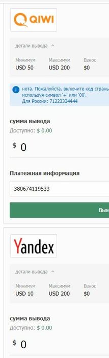Комиссия за вывод ПС Яндекс и Киви не взимается.