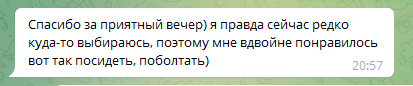 В целом вечер выдался хорошим. Очень дешёвое обратное такси кстати , в районе 230 рублей Но без калика конечно сложнее , не понятно куда нагонять девочек. Он служит как базовая точка. Вокруг него обычно бабы даже сами бывает нагоняются. Либо должен быть стол с бухлом, но это дороже выйдет. Да хоть что нибудь, нищебродные выходы какие то унылые. Но всё лучше, чем если я просто бы остался дома. Лайфстайл нужно поддерживать. Даже просто общаться со "Снежанами" это прикольные эмоции , я там такие легенды ей вешал, просто уржаться можно Говорит - Ты чё пикапер, решили тут меня на МЖМ развести ( я такой сразу, опааа, девчёнка в теме ну это наш пассажир) . Я говорю что тренер по пикапу, сначала родился я, потом пикап (эту фразу я кстати вспомнил из какого то видео кейса по знакомствам). Говорю детка , твои родители случайно не хлеб? Тогда откуда у них такая крошка Сказал что включу эту открывашку в свою пикап программу за 50 тыщ. (делайте предзаказы поцаны )
