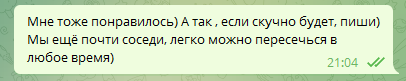 Намёк на встречу дома, если захочет. А завтра по плану продолжение со Снежаной, либо выцеплю опять рандомную из тиндера.