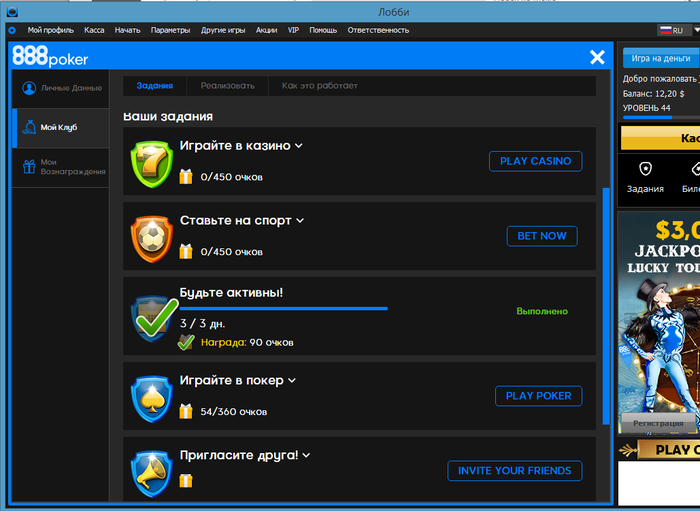 Чтобы начать получать задания нужно сыграть по крайней мере в одном турнире $3,000 Jackpotland Tournament.