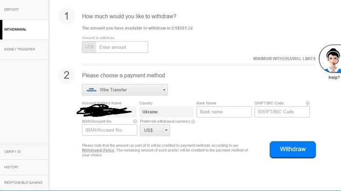 Soultkeeper @ 20.11.2017 Захожу в кассу в отдел вывода денег и мне предлагают вывести их посредством SWIFT перевода? а на карту вывести нельзя? П.С. Личность подтвердил. Депозит делал с карты.