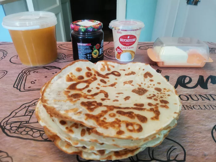 Сегодня нажарил на завтрак блинчиков! Щас наверно сразу потолстею после них-очень сдобные вышли)