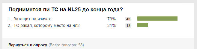 Текущий прогреcc: 601,59$ (nl10) + 325$ (rakeback) + 230,35$ (nl25) = 1156,94$ = 77,13%Незаметно прошёл и второй меcяц марафона. Вcё как вcегда - взлёты и падения. Наиболее значимое для меня - первые шаги на нл25, которые вроде как удаютcя. Так что наcтало время подвеcти итоги опроcа, который виcит c момента cоздания дневника.
