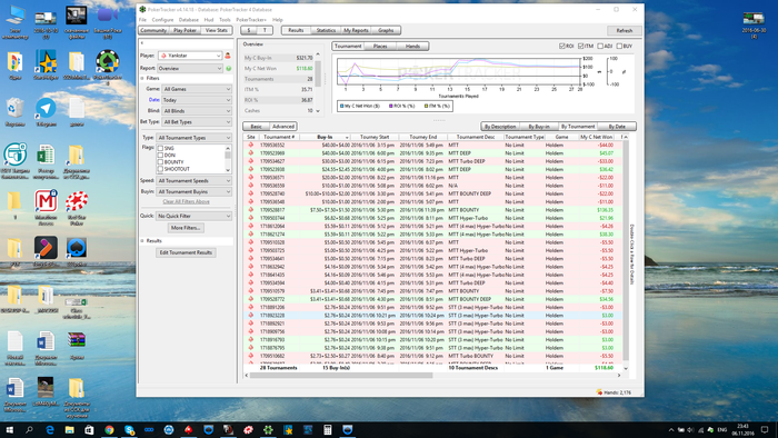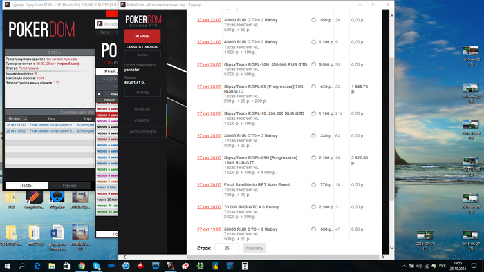 Вернувшись в номер я занимаю 2-ое место в турнире по 1к, выйдя в ХА с 60бб vs 9бб... Фартовый ублюдок. И 6-ое место по 300. За это я получил 23к. Одновременно с этим шел ребайник РОПЛ по 2500, как написал Слава постом выше. Результат: