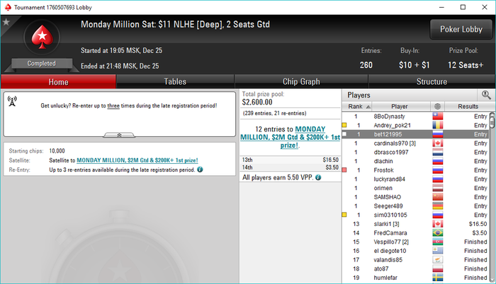 Итак, решил запилить годовой отчет. В целом, год выдался неплохим, если учесть, что начинал я его всего лишь с банкроллом в пару тысяч и аби что-то около 5$,а сейчас есть комфортный бр на аби 30... Было несколько обидных недоездов(как по моей вине, так и нет, куча предфиналок и нелевых переездов. Удалось за год плюсануть около 20к( шарк воспринимает все сыгранные мною сандэй миллионы как от себя, а выигранных саттелитов почему-то не видит, ну и Леха продажей мне своих долей принес немножко денег). По силам было плюсануть больше, но что есть