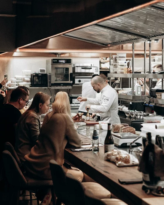 Для обеда я выбрал киевский ресторан CHEF’s TABLE украинского шефа Владимира Ярославского. Знакомые давно рекомендовали мне его как одно из мест с лучшей в Киеве кухней. Место без лишнего пафоса, с открытой кухней и стойкой вдоль нее плюс отдельными столиками (я был за одним из них).