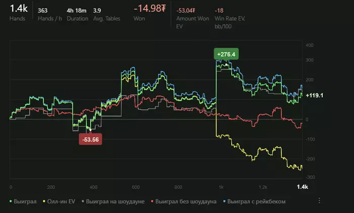 Не трекнулись конечно двойные крутки и аллины где больше 2х. Думал что буду в плюсе, но аллин на 4х, где проив моих АА, рег запушил ДД, Вип поддержал с А7о и ещё один спортсмен долго думал чирканул что то в чат и заколил 65о. 3 Стека уехали к 65о ))))) Смешно))) Была мысль нажать фолд против 3х в аллине, но не справился(