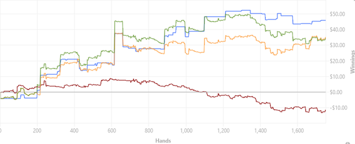 Ну а поскольку сна все равно не было, решил населектить немного столов. В итоге сыграл самую продуктивную сессию как по количеству раздач, так и по профиту за последние недели три: