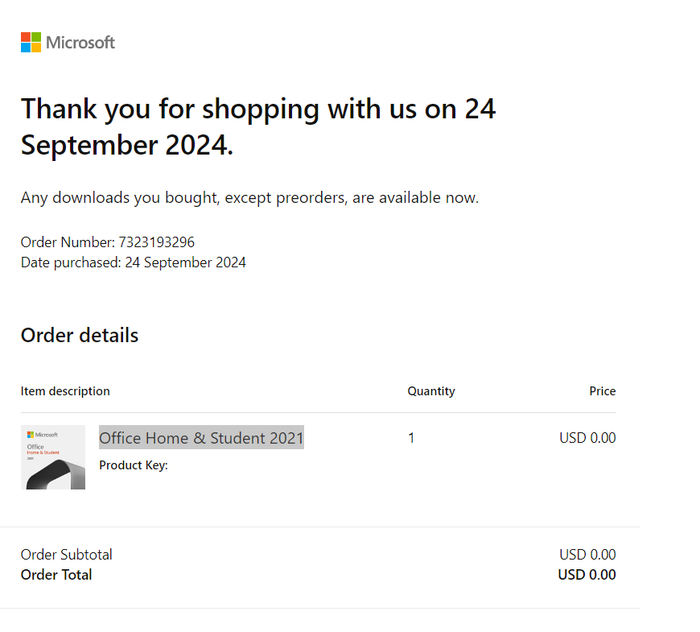 Office Home & Student 2021 привязывается к вашей учетке и мелкомягкие высылают письмо о приобретении вами лицухи офиса: