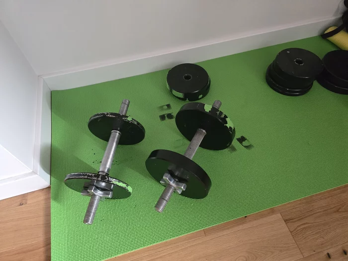 Гонтели в кабинет притащил. Жена ржала, сказала что никогда не думала, что ни мне пригодятся. Тоже потиху занимаюсь)