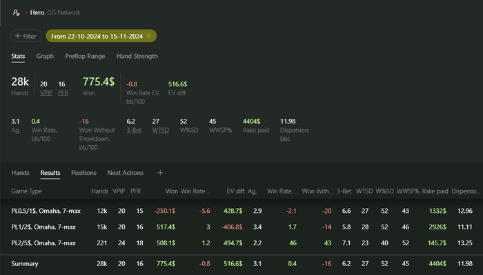 В общем откатал я 177к рук, в основном PLO 200, меньше 100 и совсем мало с селлектом 500. Катал ТОЛЬКО 4 карты, только рег столы - т.е. профильную дисциплину. Редко лудил в турики, тоже только 4 карты, может 400$ за все время залудил или около того. Отчет я собирался писать после того, как накатаю хотя бы 250к рук, но не судьба. На данный момент я стопнул GG и постараюсь в относительно спокойной форме высказать свое мнение по катке в кеш ПЛО 200 4 карты в этом руме.