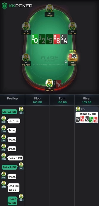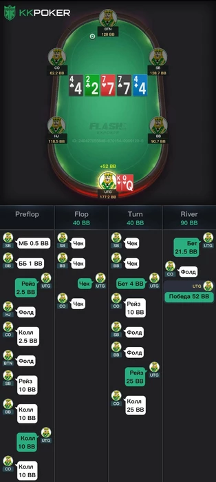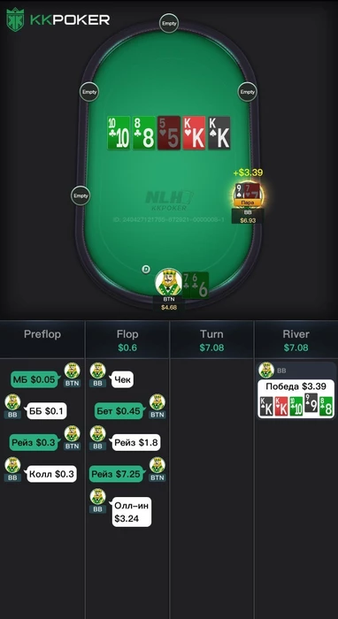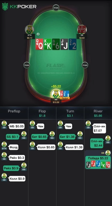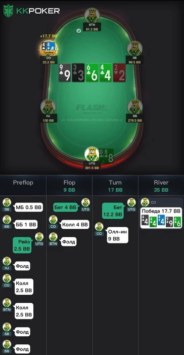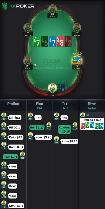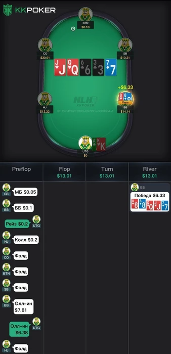 Мы хотим оставить весь хлам и проверить наличия сетов на сб, бб, но так же поля слоуплей играют, такой терн еще приносит на бб наличие очень много монстр комбодро и наша часть банка сильно падает и теперь нам не нравится наша ставка на флоп?