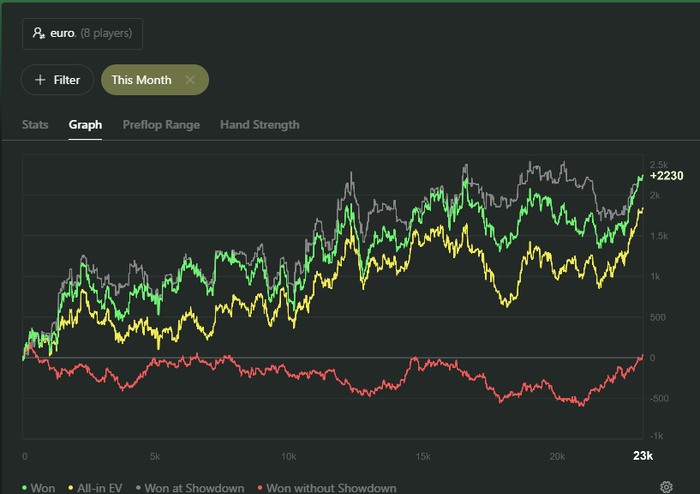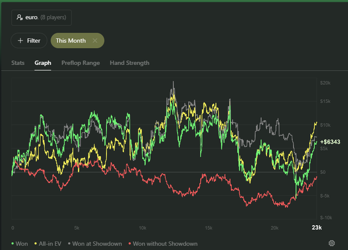 Полная кардиограмма в этом месяце была.Из-за того что 1к у меня нижний лимит сейчас, скачки могут быть болезненные. По тихоньку привыкаю к тому, что уебаться на ~10к за сессию вполне не сложно. Дохуя кулеров раздали, а учитывая что на 5к игра собирается оч редко, это по сути ключевые раздачи и диспа может быть сумасшедшей.