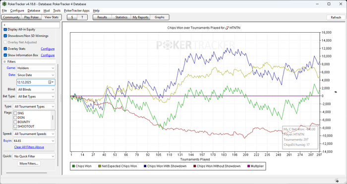 Играю этот месяц мало, но в принципе так и запланировано, хочу отыграть 6к турниров +-. После нг надеюсь вернуться к плотному гринду и, потенциально наконец подняться на десятки. Бр есть, хорошее чипев и форма тоже есть, но десятки прям очень неприятный лимит. Видел по отчетам пула чипев регов, все очень печально. Но ничего не поделаешь, в любом случае, что бы расти, нужно пройти этот лимит.