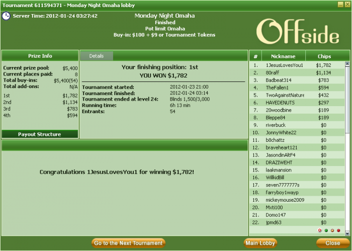 Ник твой наконец то выяснил,неа, не пересекались мы за столами турнирными, я бы запомнил такой.