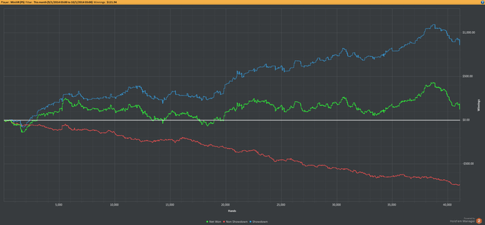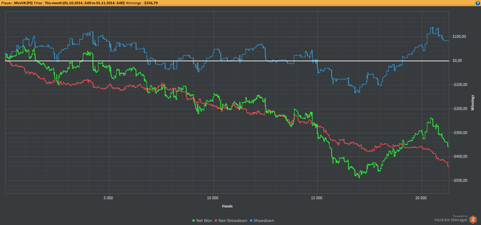Дела нормально, все путем )) График обязательно выложу вечером. Единственное, что могу сказать уже сейчас это что последняя сессия месяца меня хорошенько подъебала 15 стеков за ~3к рук это всегда было нормой для меня. WWSF за эту сессию 34, просто в одну калитку