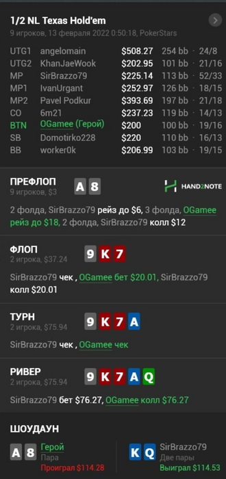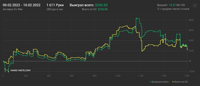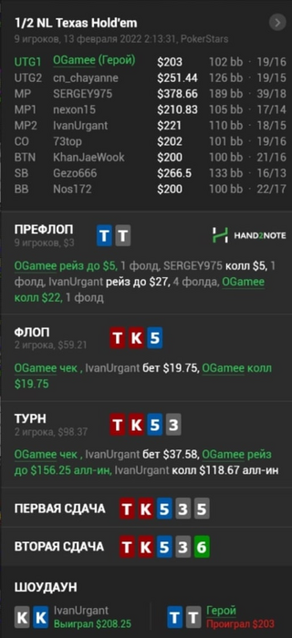 Запорол конечно результат двумя этими раздачами , в последнее время всегда 2 сценария , либо я неубедительно и узко блефую либо всегда упарываюсь в абсолютный натс.