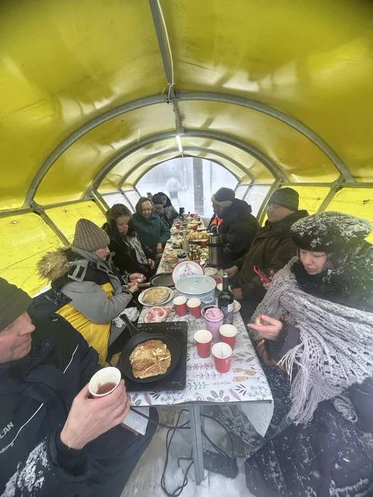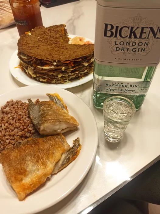 Наложил гречки немного(обычной, варёной) и налил этой массы сверху - давай пробовать!