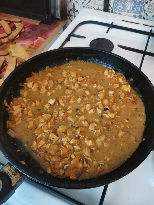 Щас готовил обед(не фоткал процесс) - новое блюдо. Короче поджарил грудку, потом размельчил её как на шаверму(по 5 мм кубики) - обжарил лук, моркву, потом тушил все вместе и добавил две чайные ложки грибной пудры(из белых) что летом заготовил! Первый раз к стати её использовал! Плюс специи и зелень!