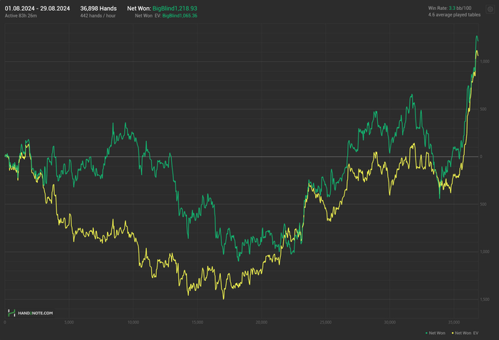 Intelligent8, Всегда удивляло, как он умудрялся отыгрывать такие гигантские дистанции с таким винрейтом, при этом вроде как хорошо селектил насколько я помню. Когда я играл нл25, меня можно было назвать гриндером, я тратил на игру действительно много времени, выкатывал стабильно 45-60к рук в месяц. Но всё таки селектил я в то время не очень хорошо. Но вот так вот отыгрывать по 80-90к, это что-то за гранью.
