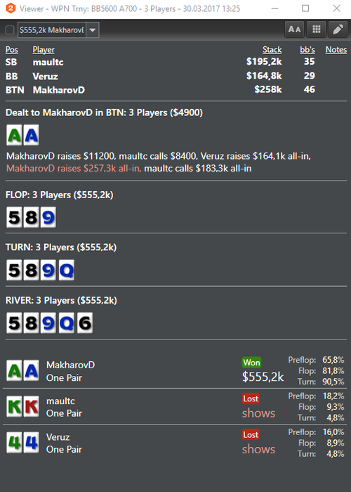 это тебе только кажется, т.к. ближе к "баблу" средний стек становится меньше, след-но, игра идёт по схеме "рейз-аллин-колл", "рейз-колл-конбэт" и т.д. Однообразная. Игроки со стеком, например, меньше 20 бб, никогда не выкинут более-менее карманки или всякие бродвеи, отсюда и диспа.