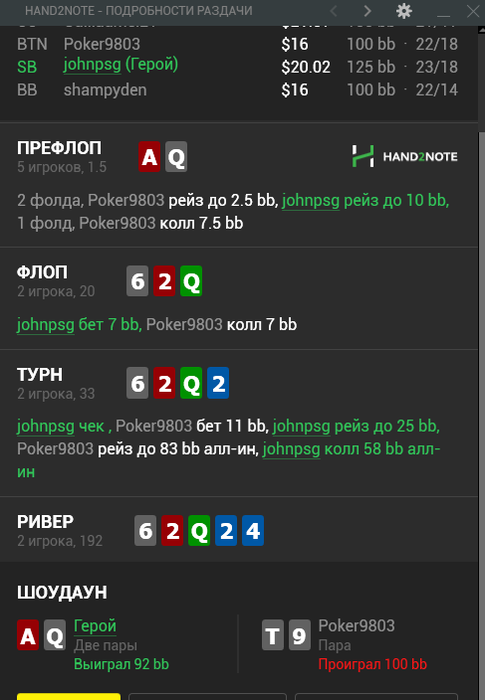 нл16 за 22К раздач пока в -1бб/100, но за счет этих 40$ уже не помню каких по счету, даже растет бр)) но лучше бы он рос от игры, конечно