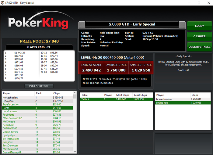 Не дотянул сука малышку, хотя грех жаловаться, отлететь мог намного раньше, хотя и потом главную монетку вечера не занес, 99<AJ, ривер J, ну а так по ощущениям, я в ахуе, народ просто катает пиздец как слабо + не в ту сторону вообще, такие самоубийцы, что пиздец Реально, что запомнилось, сначала тип на 3бет задвинул около 30бб что ли с K7o, и уехал против АА, потом парень 3бет выписал пареньку, тот на доске J27 не скинул на оленя KJ, у парня просто 106о, хули не исполнить то, и такое просто постоянно на финке, жесть