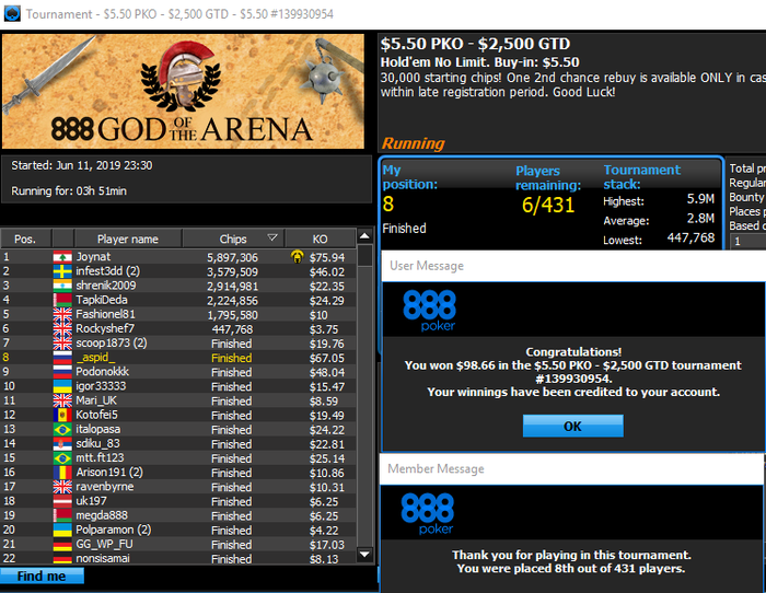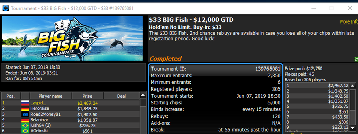 Серия закончилась в минус, попадание в ИТМ в МЕЙНе слегка скрасило потерю части БР. Хайроллер не задался, хотя, сыграл 2 раза (в кэш отбил второй вход),