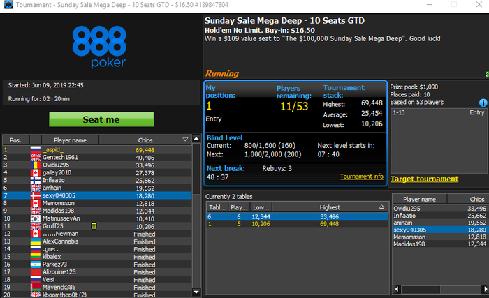 Цена распиздяйства. Мейн, бабл. Сидим пересиживаем. Тянем время до последней секунды, но карточки тайм-банка в ход не идут, ждём, когда Сергей Нарожный (турнирный директор), объявит: "Поздравляю, все в призах!". Я с оппом вдвоём в раздаче, у меня трипс. Набираю фишечек, чтоб поставить процентов 70 от пота, дабы опп отвалился, но тут дилер говорит: "У Вас пас, время вышло!" и кладет тёрн. Я аж ох...л. Опп видит карту тёрна и сразу лидит, я повышаю, он алл ин и я колл... Что тут главное, эту раздачу я проиграл , а вместе с нею и половину своего стека, который был весьма увесистый. Так вот, к чему я всё это, играть финальную фазу турнира надо особенно сконцентрированно, а я вот расслабился и облажался. Вместо того, чтобы играть финальный стол, остался лишь 17... Если непонятка какая лучше позвать флора, потому как в этой раздаче дилер отвлекался и болтал много с игроками, игру не вёл. Это я пишу для информации тем, кто ещё не бывал в таких ситуациях. Дилеры вообще ОЧЕНЬ много ошибаются, надо самим считать и банки, и побочные банки и тд и тп. А вот таким был мой стек на бабле, при среднем 250К...