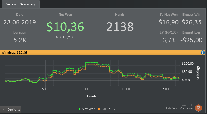 Я стараюсь регулярно в конце каждой недели, производить разбор всех спотов, проигранных на сумму от 100ББ-40ББ, вне зависимости в плюс отыграл или в минус по итогу. Другое дело, что разбираю я как правило только те споты, в которых проиграл, но теперь задумаюсь над твоими словами, спасибо за совет.