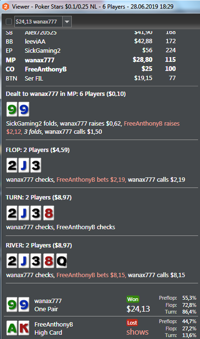 Я стараюсь регулярно в конце каждой недели, производить разбор всех спотов, проигранных на сумму от 100ББ-40ББ, вне зависимости в плюс отыграл или в минус по итогу.