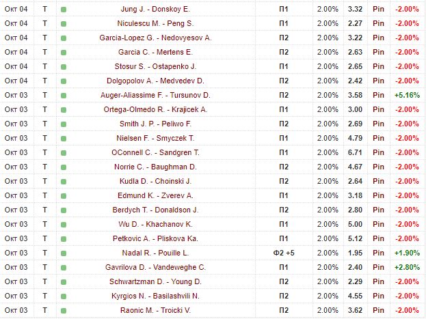 5. Lajovic D. - King D. Ф2 +3 1.50% 1.89 Pin