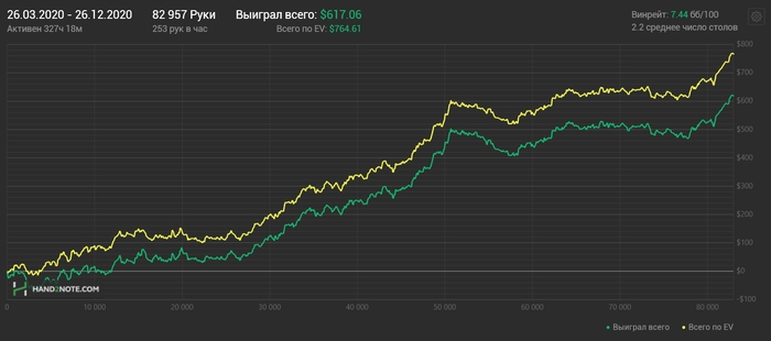 Учитывая, что трекер потеря какую-то часть рук, покером, за 2020 год мне удалось заработать.