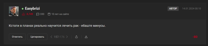 И надеюсь, что администрация сайта сразу завернет его пост про лечение рака онлайн и не вывесит этот сюр на главную. Лучше всего было бы просто забанить автора это блога. А то за оскорбления банят только так, а за очевидное 159 УК РФ - нет