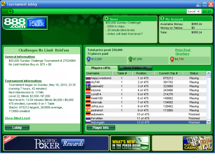 Phantom_74 @ 17.5.2010, 7:34 Тоже решил отметиться, первый трехзначный занос все-таки)) А точнее недозанос, 12 место +550$! Но и турнир с таким БИ для меня первый, так что надеюсь все впереди!