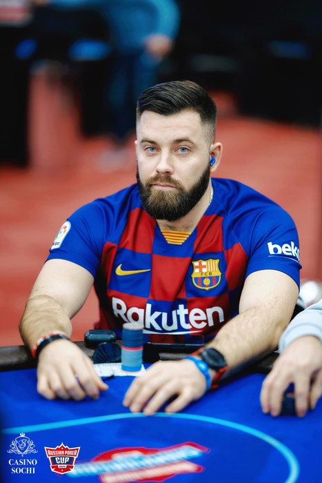 Стол 1. За тем же столом сыграли такую. Данил Вахрушев открылся с ранней с , уравняли двое за ним, а также Дмитрий Атаков на SB с и Николай Фаль на BB.