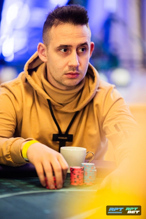 Станислав Киселев спустился с ТВ-стола после проигранного выставления < . Спустя минуту с другого стола выбыл Илья Жуков.