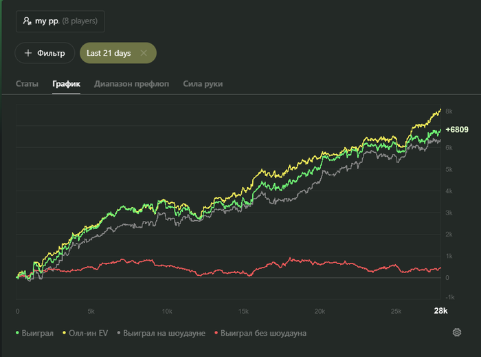 С момента последнего поста прошло +- 3 недели, скидываю графики за ласт 21 день. Не буду скромничать, откатал хорошо)